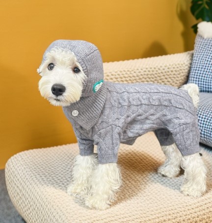 강아지 올인원 니트 산책용 스웨터 애견옷 바라클라바 세트